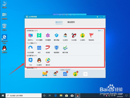 打开QQ应用办理器面板后,点击顶部的“腾讯软件”