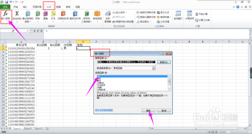 方式一:选中要插入公式的单位格,点击【数据】选项卡下【函数库】功能组中的【插入函数】按钮,弹出【插入函数】对话框,找到【IF】函数,点击【确定】按钮。