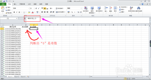 应用:下图中C2单位格中的公式”=MOD(B2,2)“暗示B2单位格中的数除以2,确认后显示”1“,可知B2单位格中的数为奇数。
