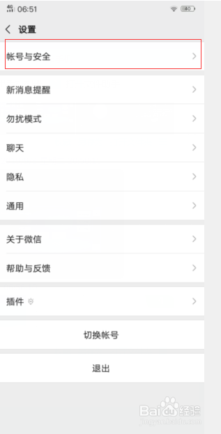 在跳出的窗口,选择并点击账号与平安。