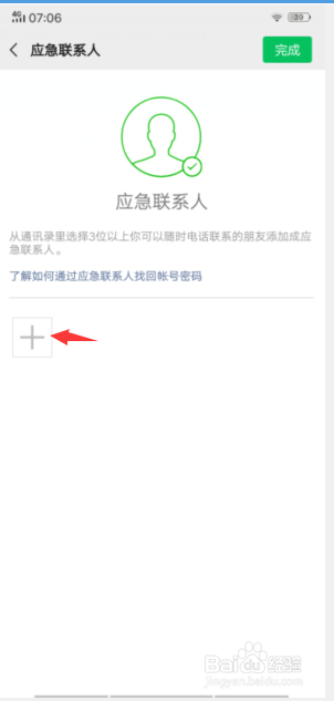 点击应急联系人页面的“+”选择3位以上的好伴侣后,点击右上角确定就可以了。