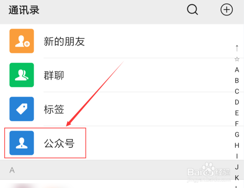 在“通信录”页面中,点击进入“公家号”。