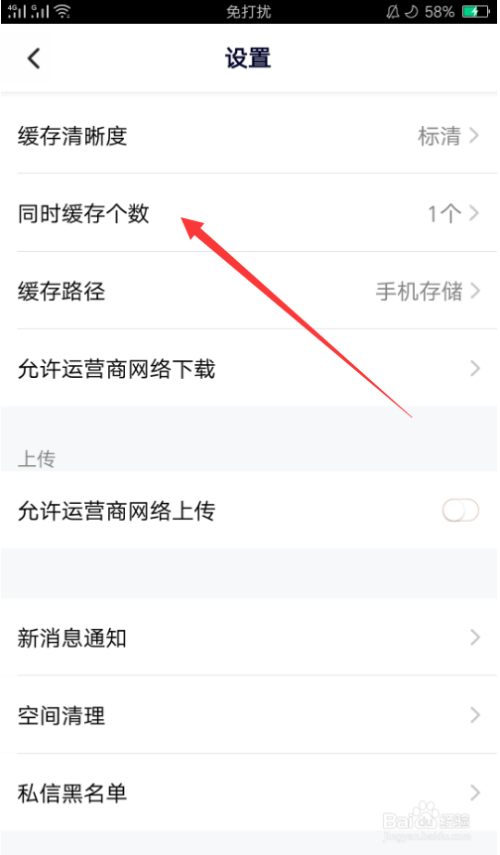 点击进入设置界面,在该界面找到并点击“同时缓存个数”,如图。