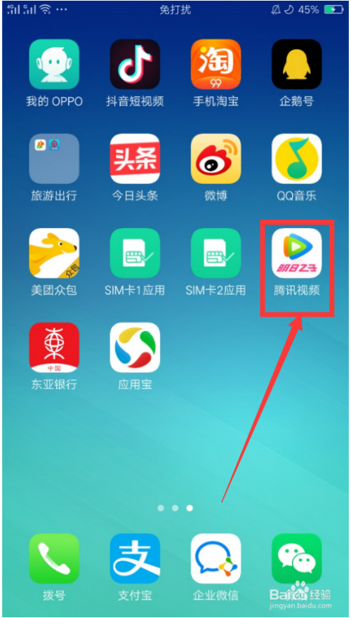 手机解锁,然后点击打开腾讯视频APP,如图。