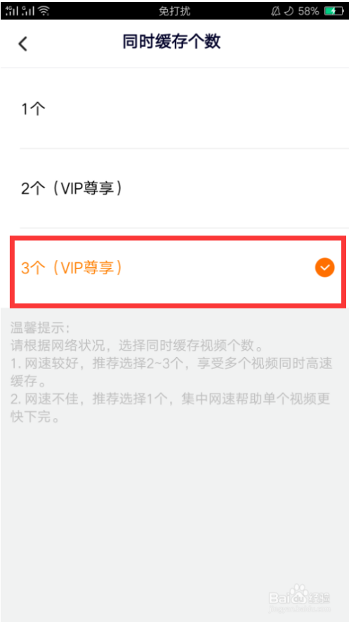 在同时缓存个数界面点击选择需要缓存个数,如图。