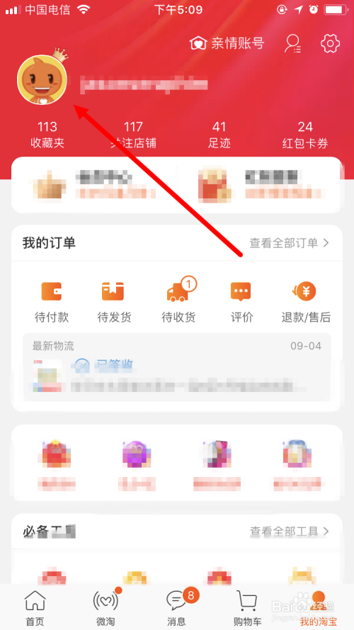 进入 小我页面 后,点击左上角的头像。