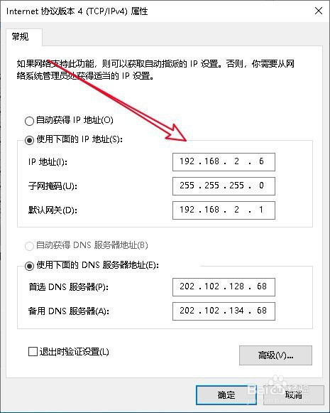 接下来在打开的属性窗口中设置好IP地址,同时需要设置DNS办事器地址,最后点击确定按钮。