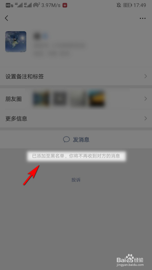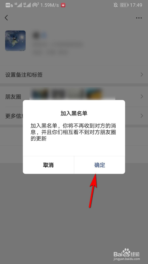 选择将要拉黑的对象