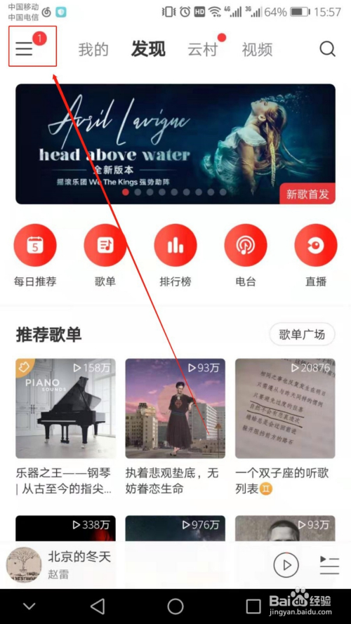 首先打开网易云音乐,点击【三】。