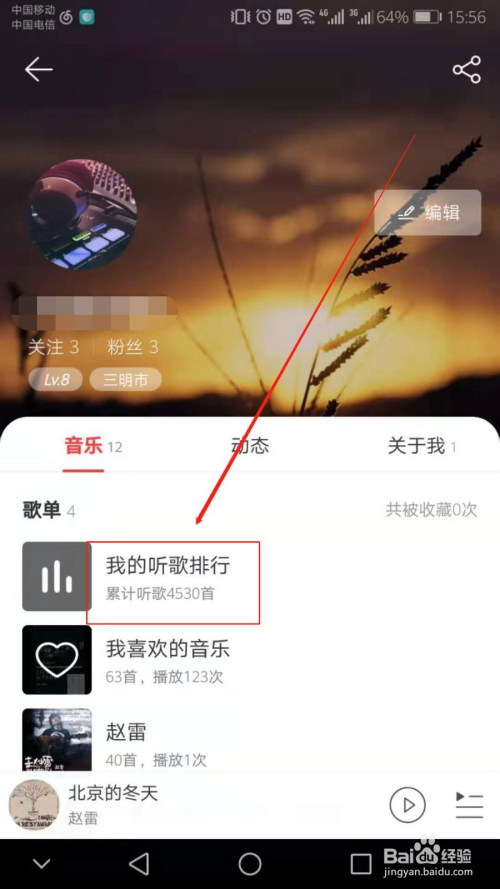 接着点击【我的听歌排行】。