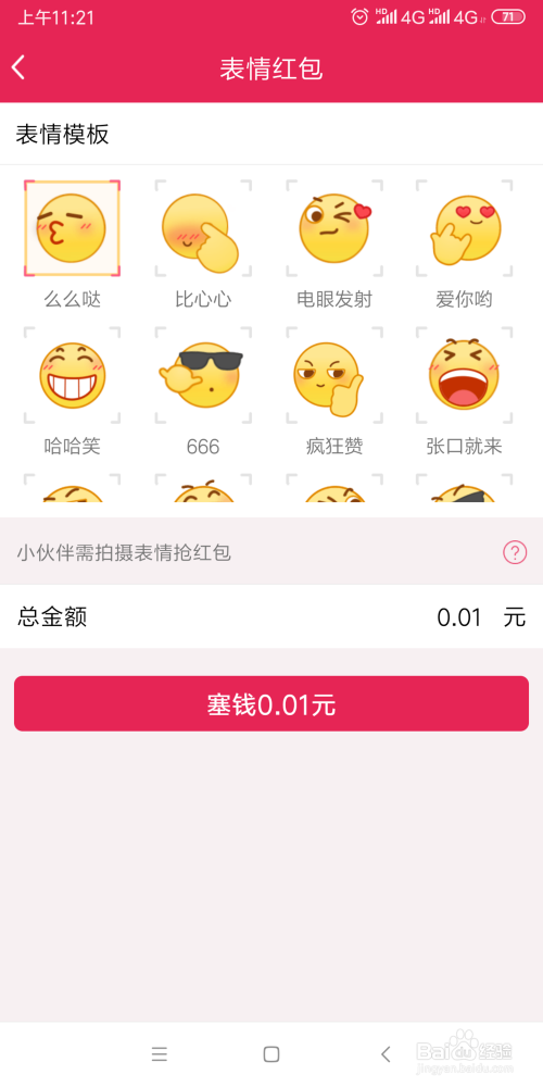 点击一下红包,需要按照上面的脸色做脸色,才能领红包。