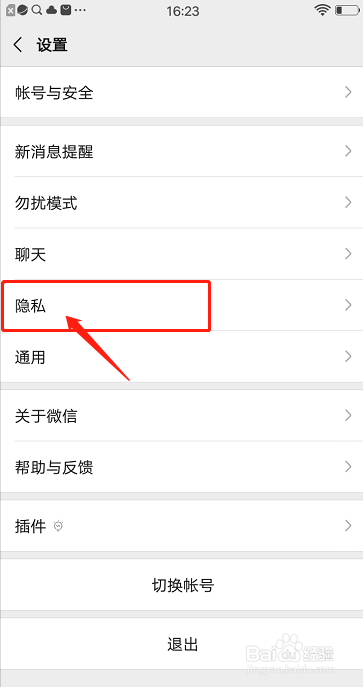 在设置下面找到“隐私”点击进入,在隐私界面下面找到“添加我的体例”点击进入;