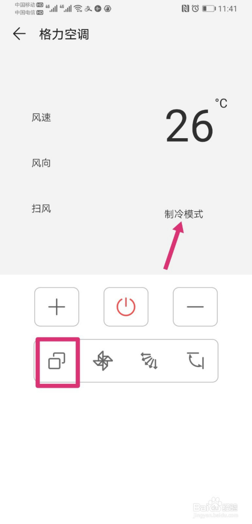 进入空调本家儿界面,没有温度显示,点击左下角两个方框的图标。