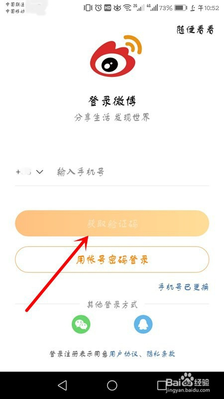 进入微博,点击账号和密码登录。