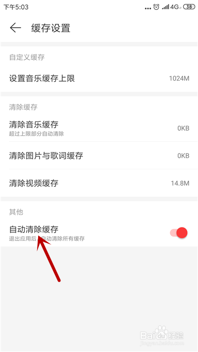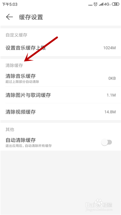 缓存分为音乐、图片和视频,点击要断根的缓存内容。