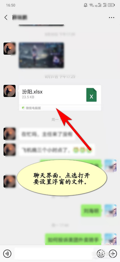 聊天界面,点选打开要设置为浮窗的文件;