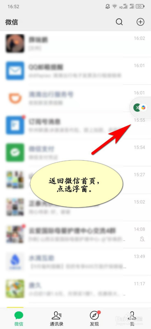 5、返回微信首页,点选微信“浮窗”