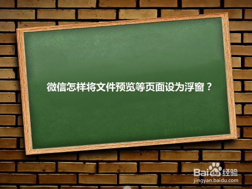 Version 7.0.6新增了一个浮窗功能,可以将文件预览等页面设为浮窗,便利查阅,今天小编就教大师微信如何将文件预览等页面设为浮窗。
