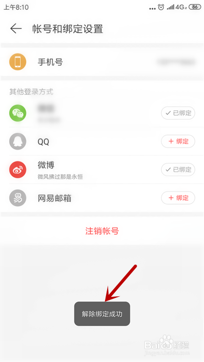 返回绑定界面,显示【解除绑定当作功】即可。