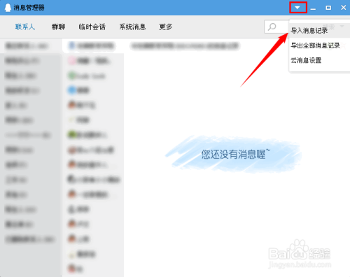 在打开的“动静办理器”对话框中,选择需要导出动静记实的老友或群,然后单击右上角的下拉三角按钮,选择【导出全数动静记实】。