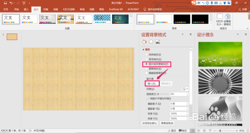 Win10有自带的office,跟其他版本的不太一样,所有里面的操作也略微有差别。下面就来介绍在Win10自带的powerpoint里面如何插入图片作为布景。