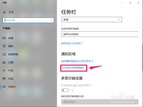 下拉使命栏页面,找到通知区域下的【打开或封闭系统图标】。