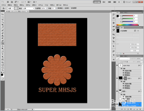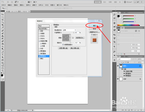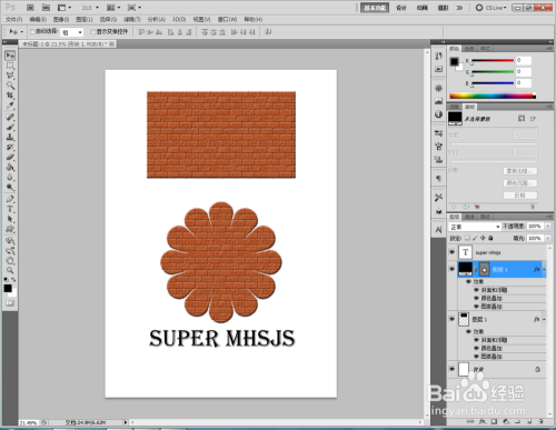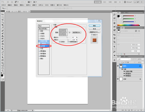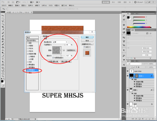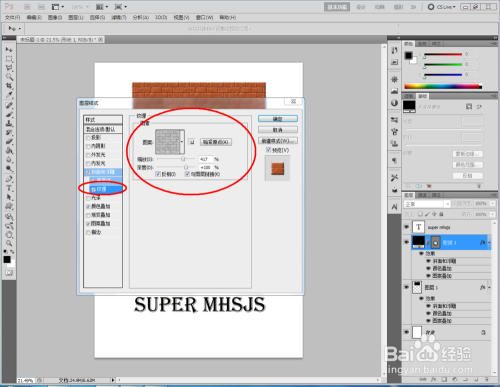 双击图示矩形图案图层空白区域,弹出【图层样式】设置栏,按图示设置好图层样式的各个参数,完当作矩形墙砖结果的建造(如图所示);