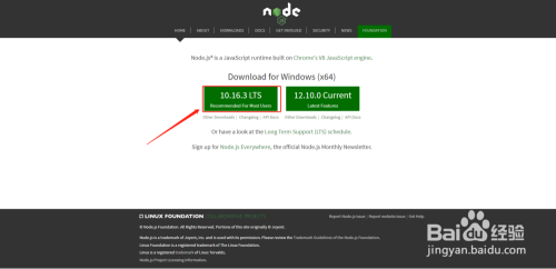 首先,我们打开浏览器,进入node.js(https://nodejs.org/en/)官网,下载官网保举的版本。