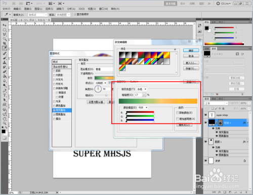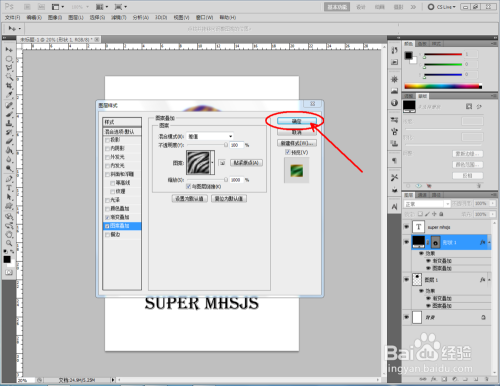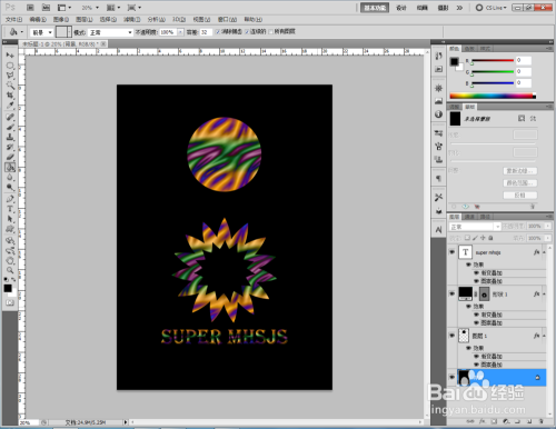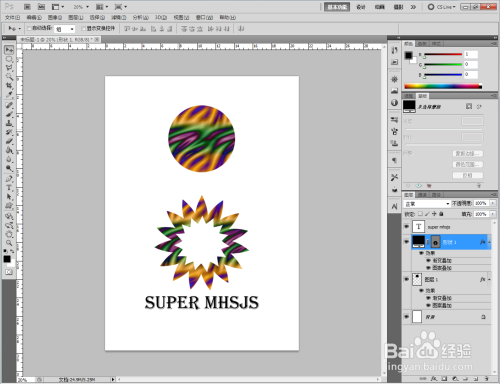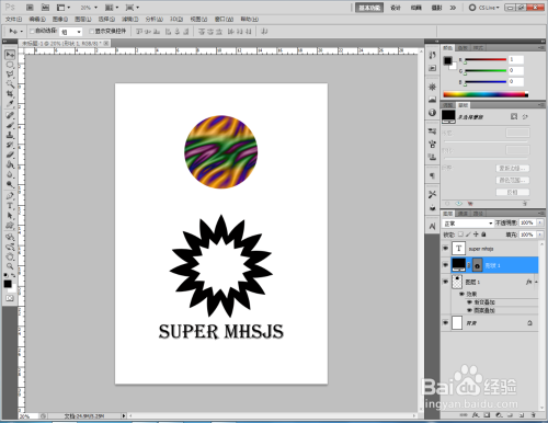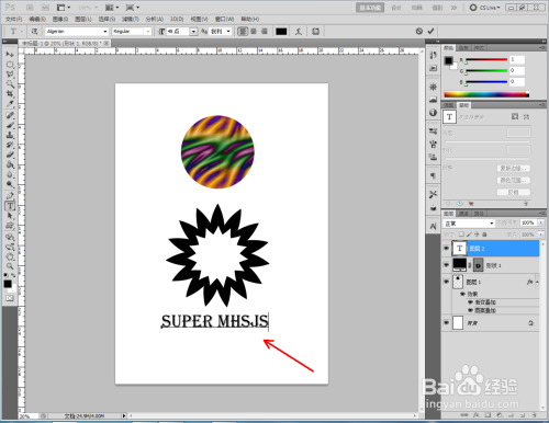 点击【自界说外形东西】,按图示设置好各个参数后,在作图区域绘制出一个自界说图案。点击【文字东西】按图示设置好文字的各个参数并输入文字内容:SUPER MHSJS(如图所示);