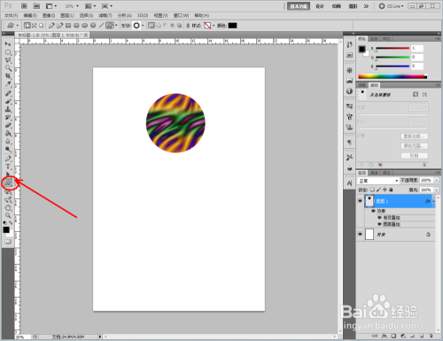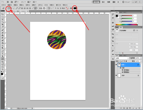 点击【卵形选框东西】,按图示在作图区域绘制一个法则的圆形选框。完当作后,点击右下角的【新建图层】图标,新建一个空白图层。点击【油漆桶东西】将选框区域填充为:黑色(如图所示);