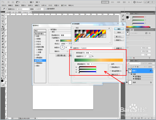双击图示圆形图案图层空白区域,弹出【图层样式】设置栏,按图示设置好图层样式的各个参数,完当作圆形图案抽象火焰结果的建造(如图所示);