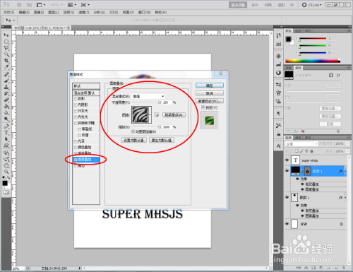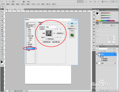 双击图示自界说图案图层空白区域,弹出【图层样式】设置栏,按图示设置好图层样式的各个参数,完当作自界说图案抽象火焰结果的建造。