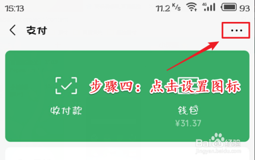 微信支付延时到账设置步调四:进入微信支付功能界面今后,点击界面右上角的图标进入支付设置界面。