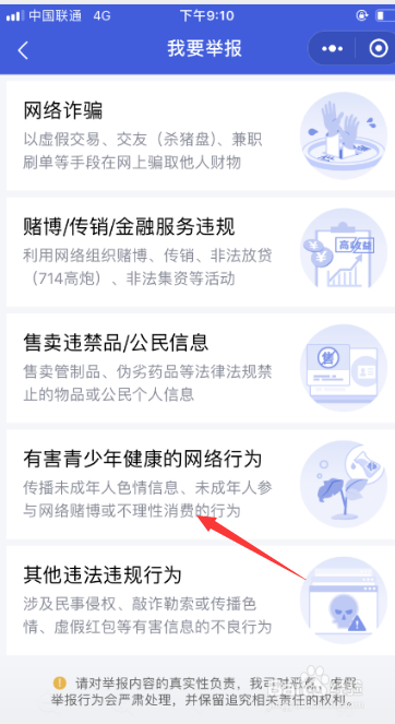 进入举报页面,如下图所示,找到你要举报的类型,点击进入。