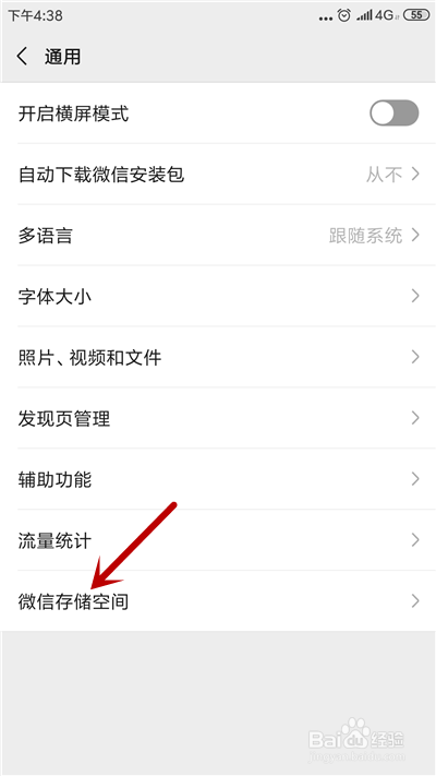 进入通用界面,点击【微信存储空间】。