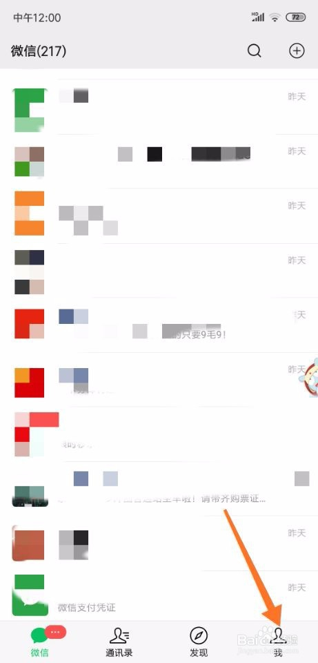 进入微信首页今后,点击底部按钮我