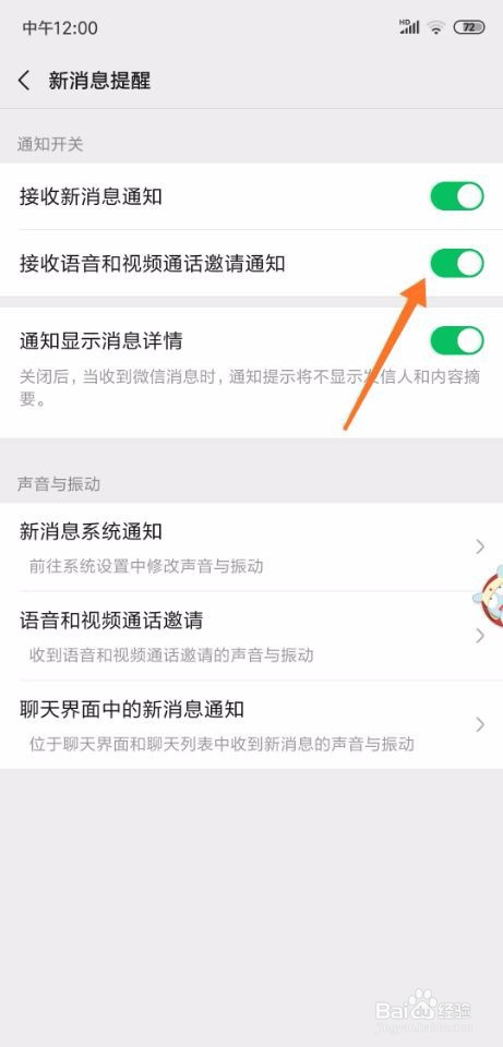 进入新动静提醒界面今后,找到而且勾选接收语音和视频通话邀请通知