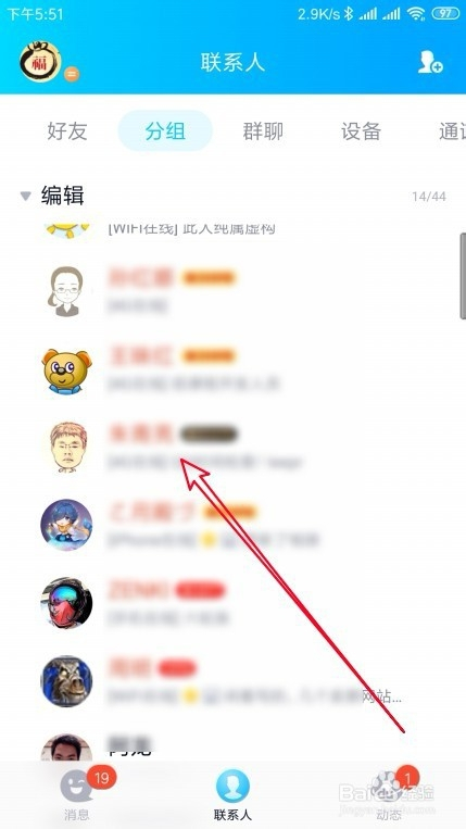 接下来在打开的新版QQ的联系人页面中,找到一路听歌的老友昵称。