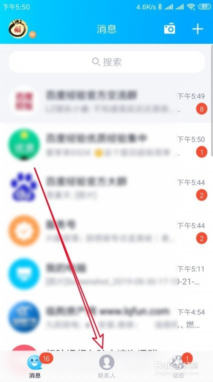 然后在打开的新版QQ的软件本家儿界面,点击底部的“联系人”选项卡。