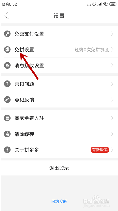 接着,找到【免拼设置】选项并点击。