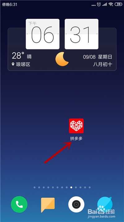 解锁手机,在桌面上打开拼多多应用。
