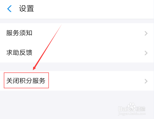 点击“设置”页面中的“封闭积分办事”选项。