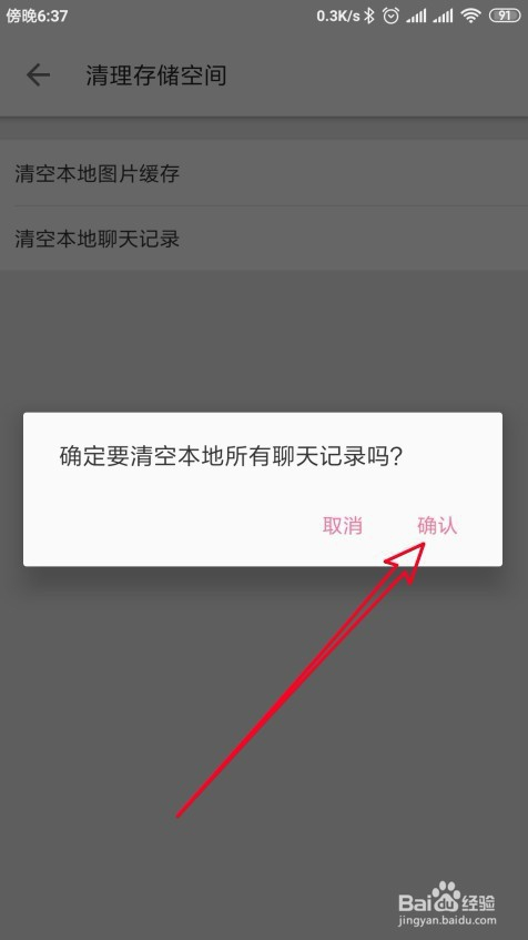 然后会弹出确认要清空当地聊天记实的窗口,点击“确认”按钮 就可以了