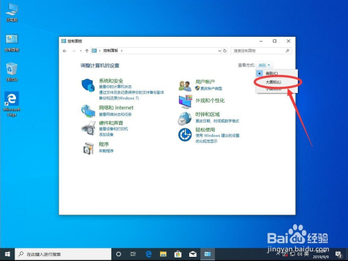 在打开的下拉列表中,点击选择“大图标”,将节制面板设置当作大图标模式
