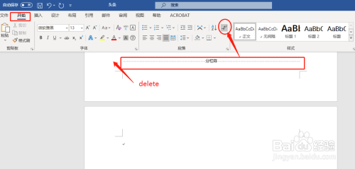 因为利用了分栏符,导致空白页,打开,起头→显示/埋没编纂标识表记标帜,并点击,再delete,如图
