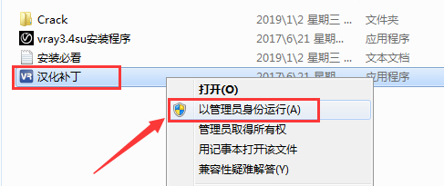 打开解压文件,鼠标右击“汉化补丁”,选择“以办理员身份运行”。