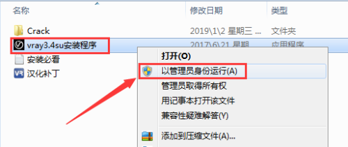 打开解压文件,鼠标右击“vray3.4su安装程序”,选择“以办理员身份运行”。