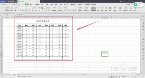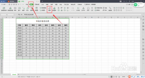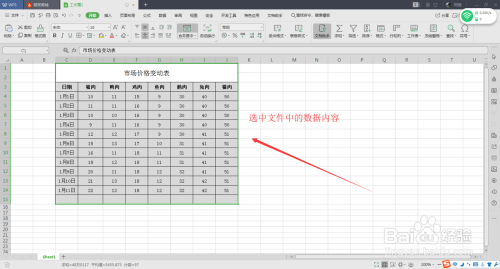 3、选中数据信息;
