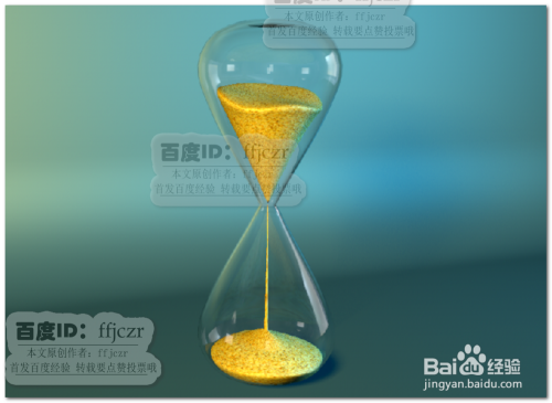 给沙漏付与材质后,衬着;可以看到沙漏是闪现透明的状况,但就像一块实心玻璃一样,不通透;这不是所要的结果。