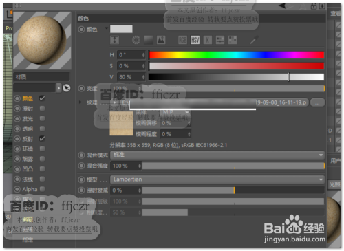 先给流沙添加一个带有沙子贴图的材质,只要在颜色通道的纹理中添加一张沙子贴图即可。